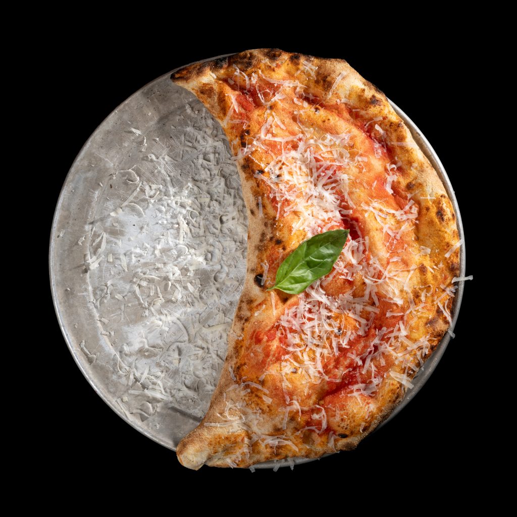 Base de Tomate San Marzano DOP, Mozzarella Fiordilatte DOP, albahaca, Pecorino Romano DOP y AOVE.