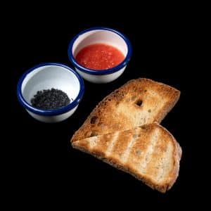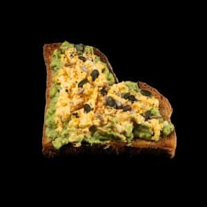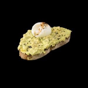 Bruschetta de smashed aguacate, huevo y AOVE.