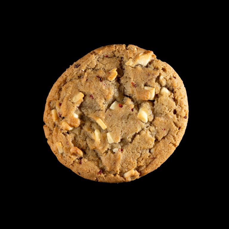 Galleta con pepitas de chocolate blanco y frutos rojos.